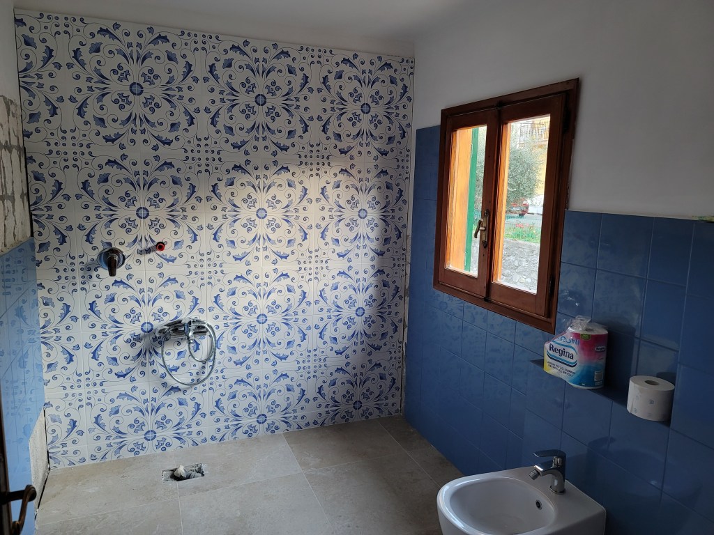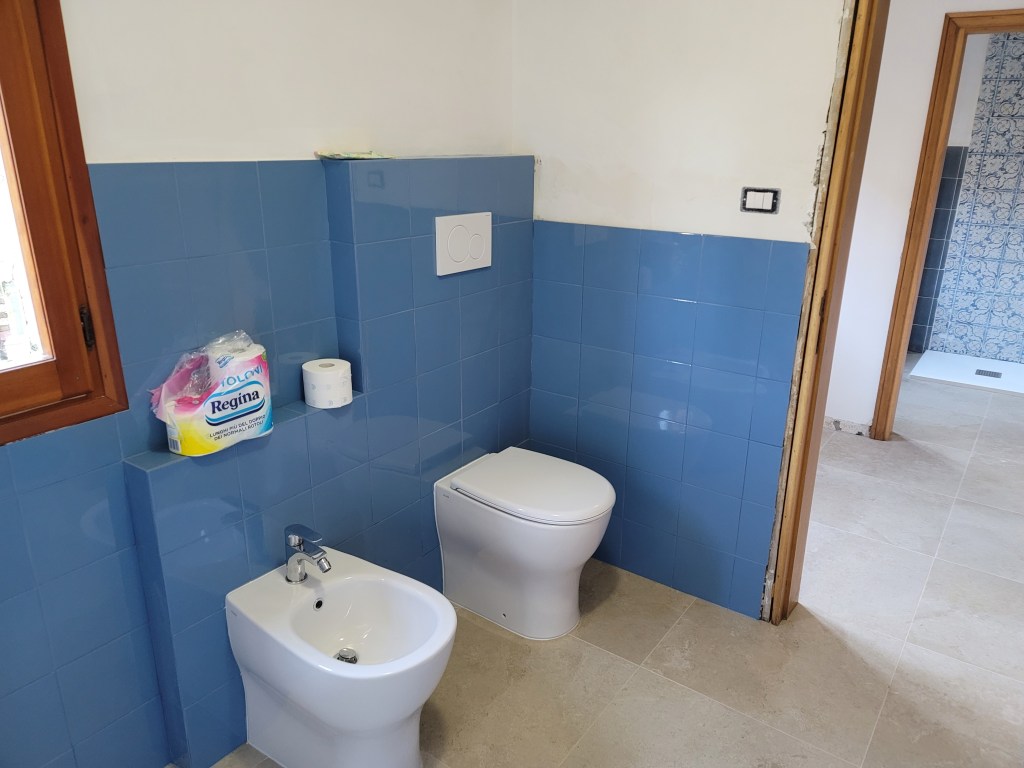 Both bathrooms are under development, both with new working toilets and one with a bidet. No sinks, no showers, niente. But beautiful tiles on the walls and a fantastic floor. When will I have a shower, even if only one? Io non so!