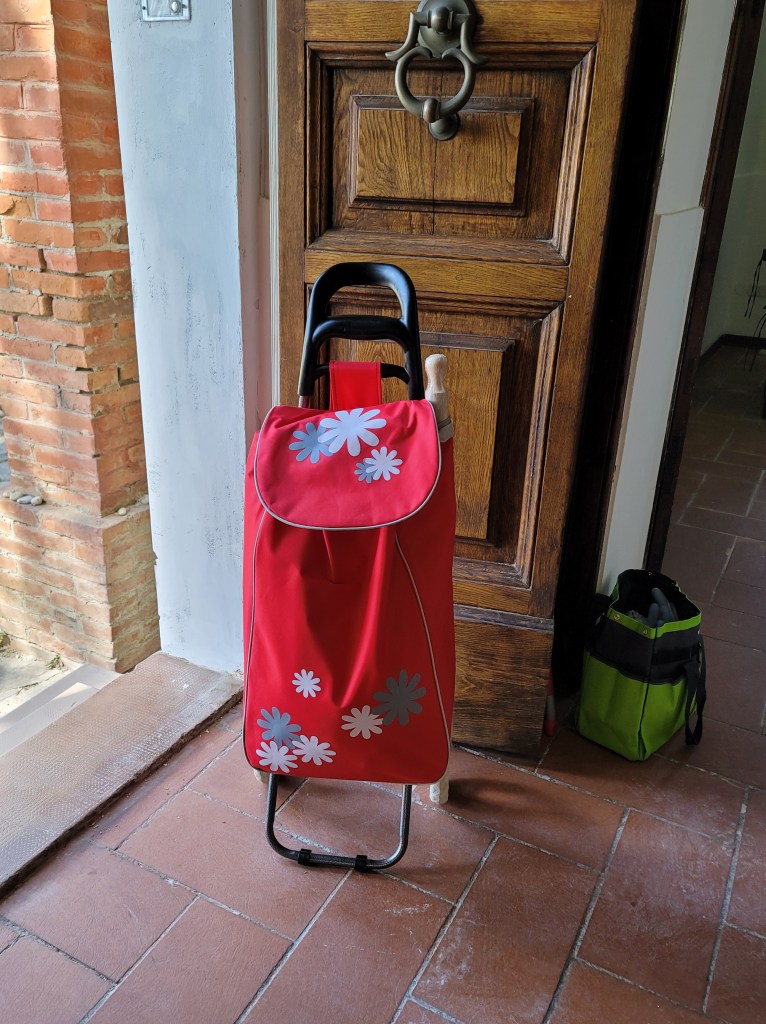Jess and I LOVE market days, at least those north of Rome, all through Umbria and Tuscany. We always see the Nonna’s (technically Nonne) walking down the street with their market goodies which has always helped us locate the market in a new town. Most of them have these very specific market bags (on wheels), which are cute and helpful. Now that I own a house in Italy, I NEED a market bag of my own.