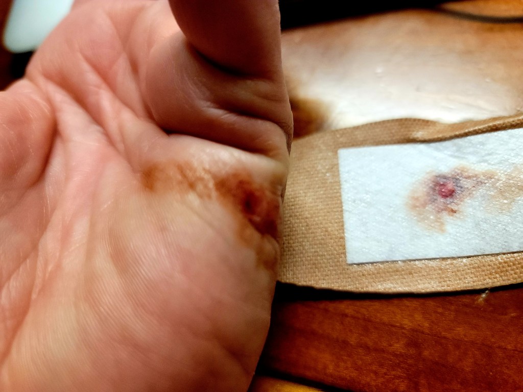I was SO excited at my shower-adventure weekend that I accidentally pinched my hand in the door when I tried to close the door jam. It hurt like crap, instantly swelling and blood started pooling. So field trip diverted momentarily while I grabbed a giant bandaid.