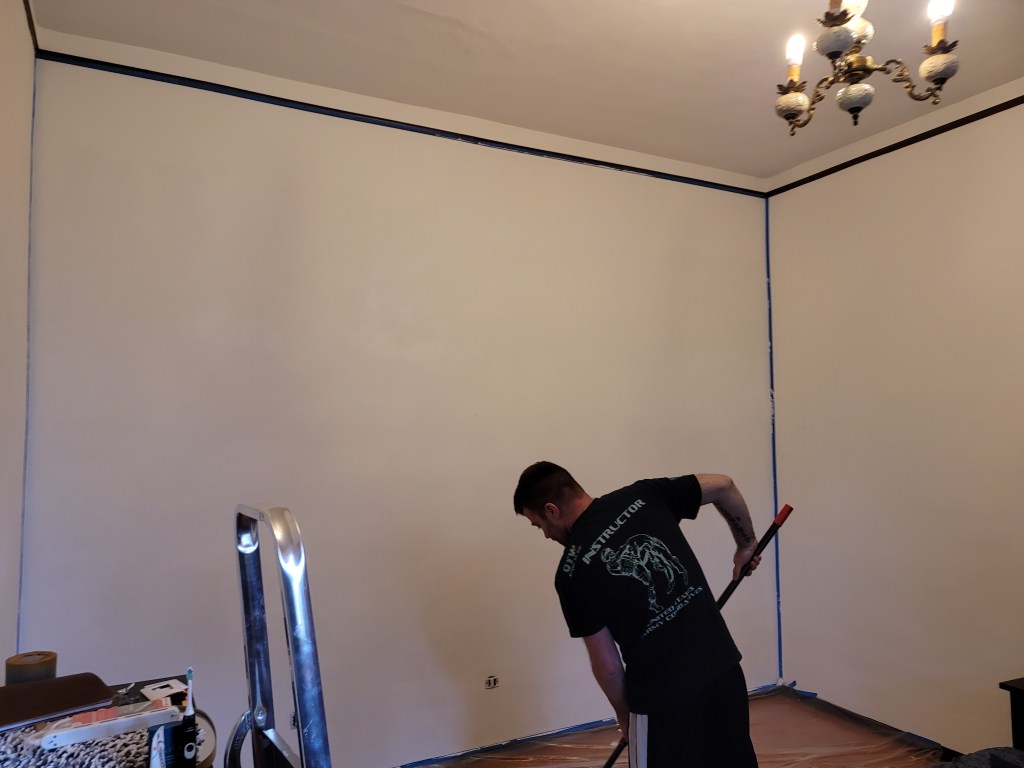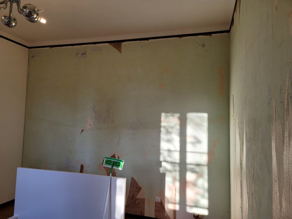 Notice the hideous light fixture straight out of 1970 in the picture above? You will see that it was replaced with a beautiful glass chandelier in the pictures with the painted wall. Next up…creating a space for mom.