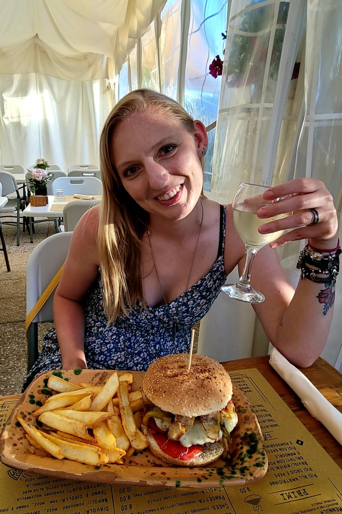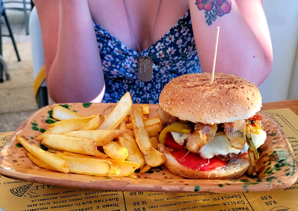 After our fabulous time at the winery, Jess, Grammie and I went to Mennula, the Pizzaria next to the train station in Fabro Scalo. We have befriended the staff, including a special bond with Valentina. I will write about her in another post. To keep it simple, this place has fabulous pizza and the most AMAZING hamburgers. Seriously, you can fact check me on Yelp!