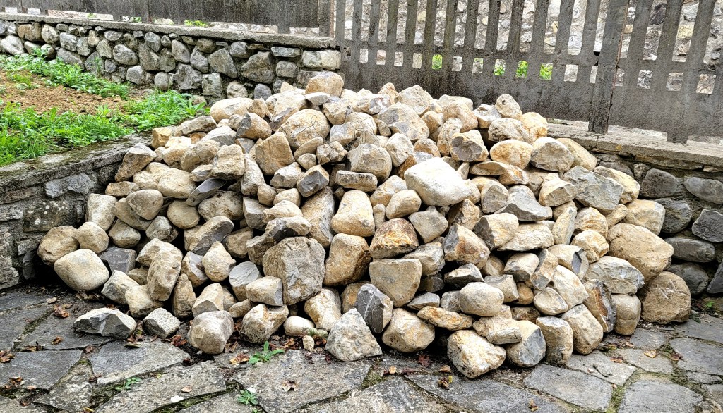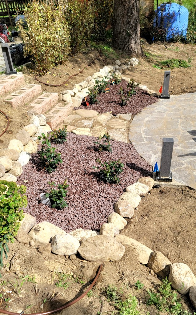 My pile of rocks…I asked Adriano to incorporate as many of these into the garden design as possible so that I could retain some history of the house. He created retaining walls in several areas and they are perfect. However, it barely made a dent in this pile. It would live in this corner of the house for more than a year, but alas, I finally got someone to haul them away.