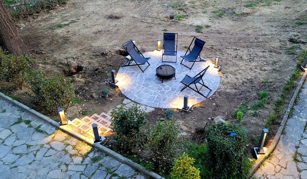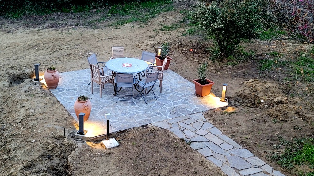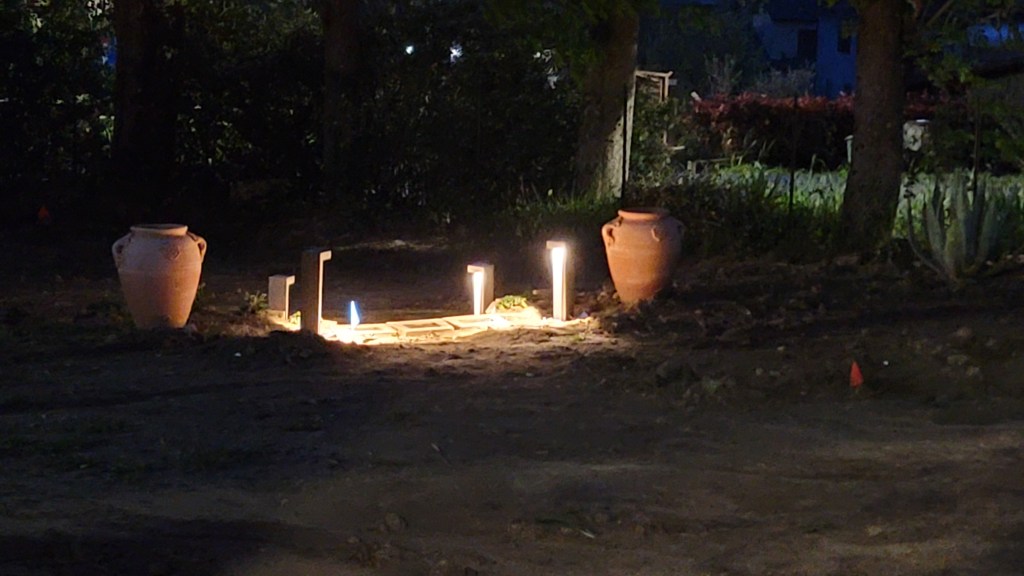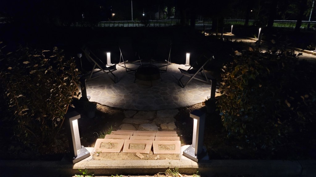 I noticed when it was getting installed that the firepit area had the taller lights but that was wrong. These were intended for the walkway from the front door to the gate. I tried to explain but the electrician didn’t understand, so I messaged Federica. Within minutes, she and Nazzareno were on the phone, he was arguing and pacing around, then Adriano arrived and showed him where the taller lights were intended. He was not happy but that’s on him, he installed them wrong.