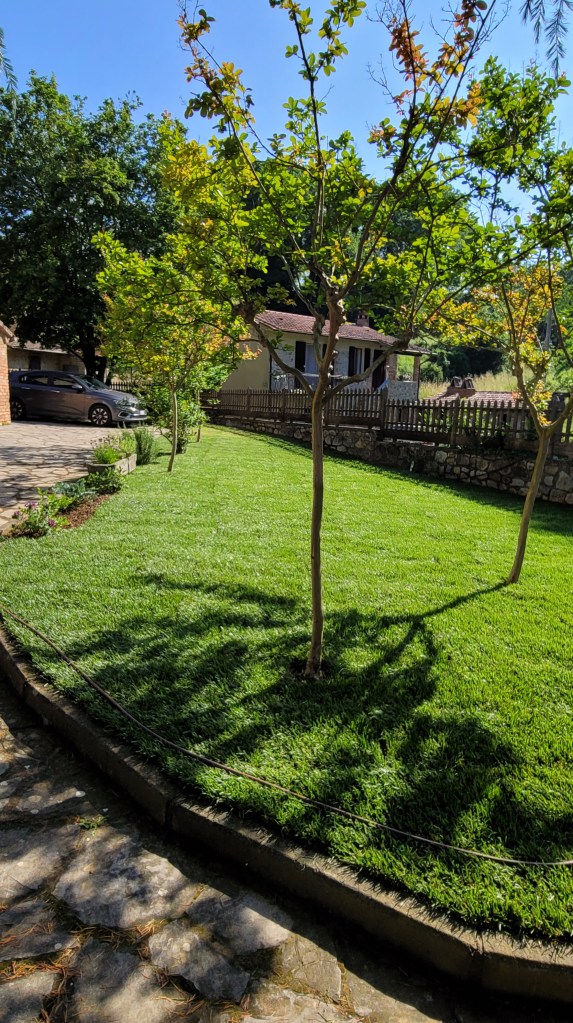 There’s a funny story about the orange trees. In the Fall of 2022 when we were planning out the new landscaping and hardscaping, I asked Adriano to fill in the two square openings on each side of the front door. He looked at the spaces and said “No!, Arancia!!” I was very confused…how can you plant orange trees in the ground and not a lemon tree??? But Adriano was insistent. I was concerned they would get too big and block the windows, but again, Adriano insisted. This won’t be the last time Adriano gets to tell me “No!”