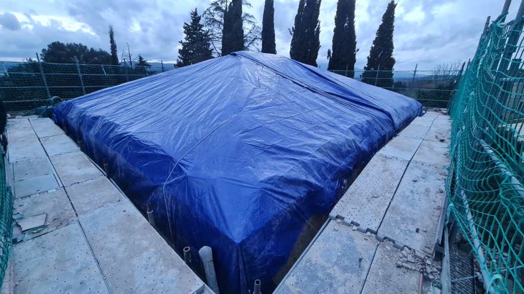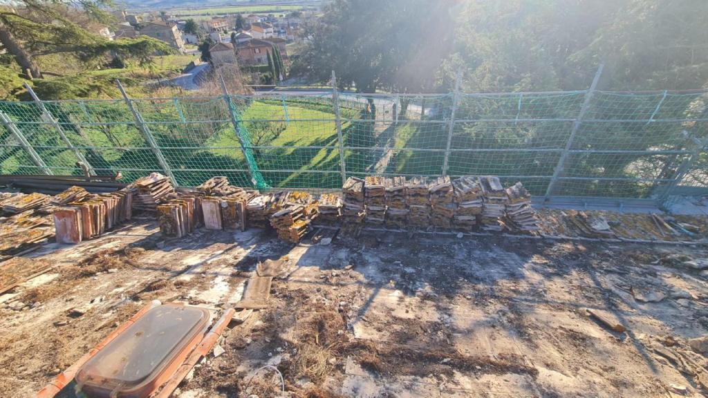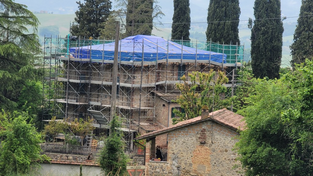 At some point in March, a portion of the tarp came loose during a storm. The Umbrian wind is a serious force to be reckoned with!!!