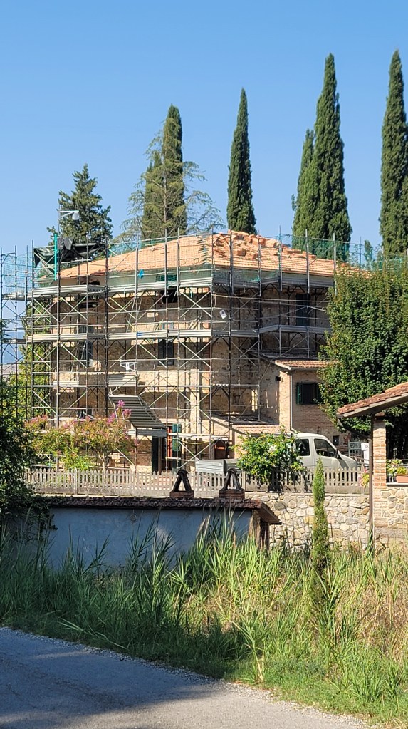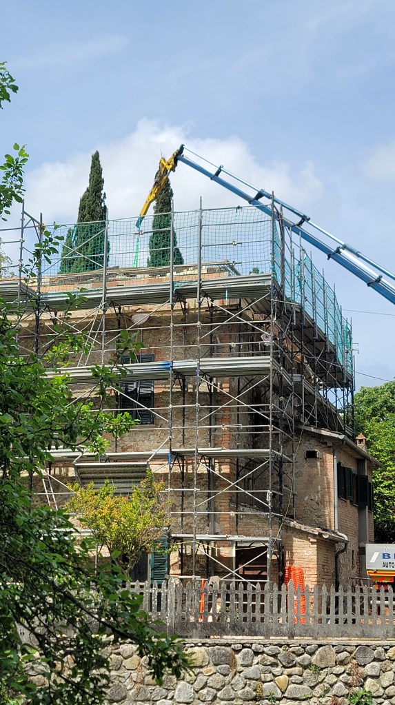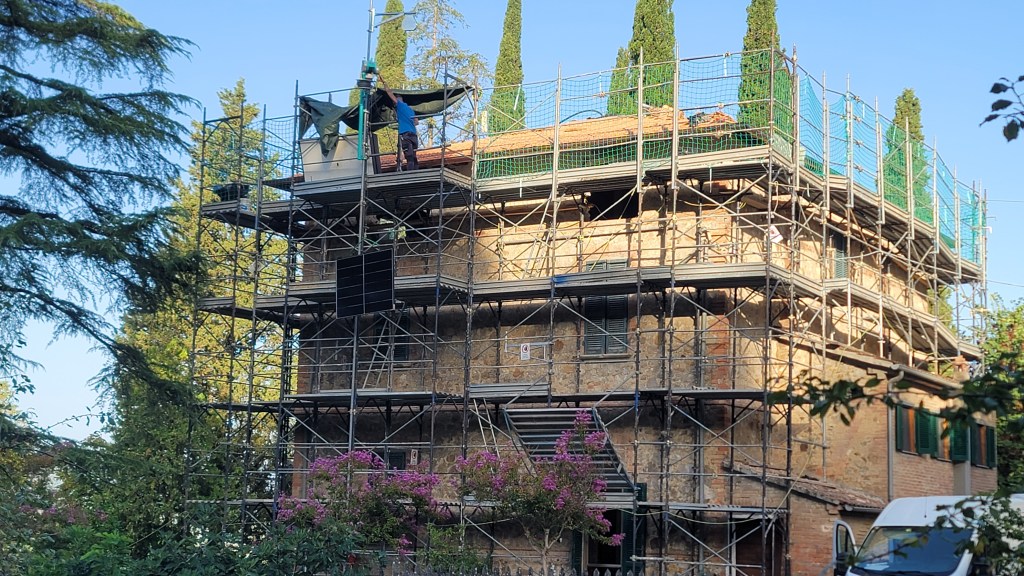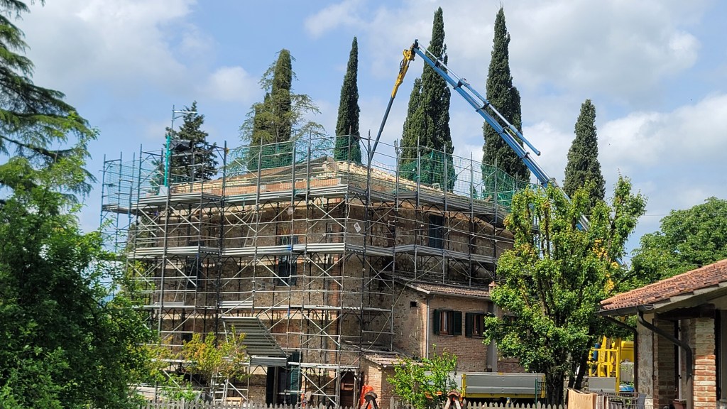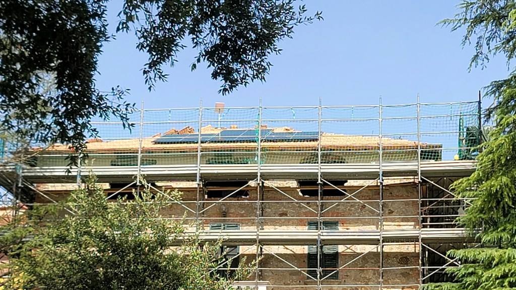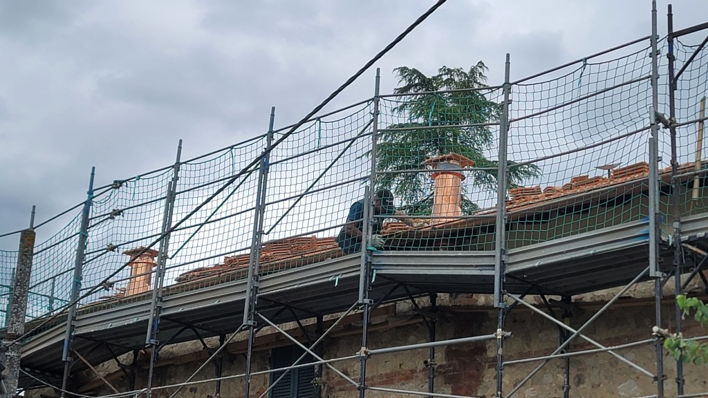 We had planned on starting the roof in the late Fall, but due to a number of factors, that didn’t happen. They came & installed the scaffolding (ponteggio) near the end of January. We had budgeted for 2 months and it remained up through early September…start doing the math! As with any renovation project, you run into issues that were unforeseen that add to the cost. However, we did not build in a contingency budget…lesson learned.