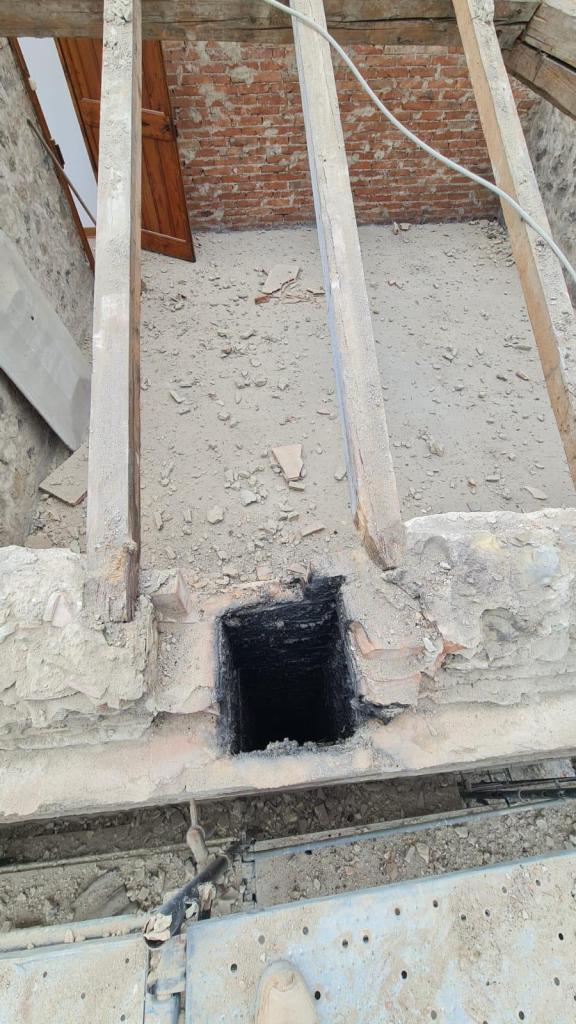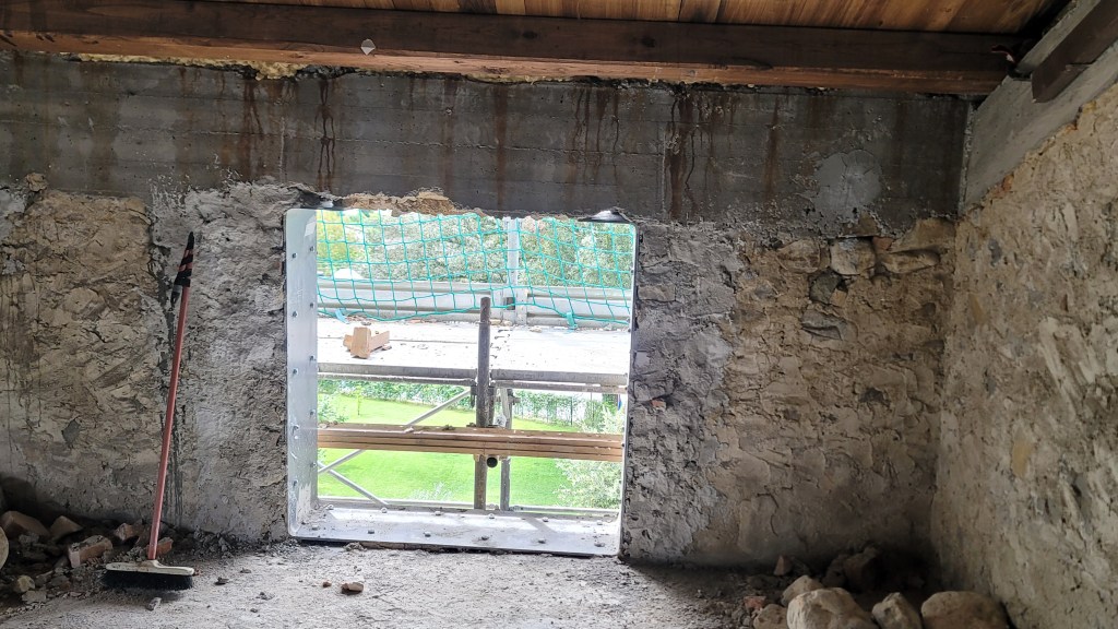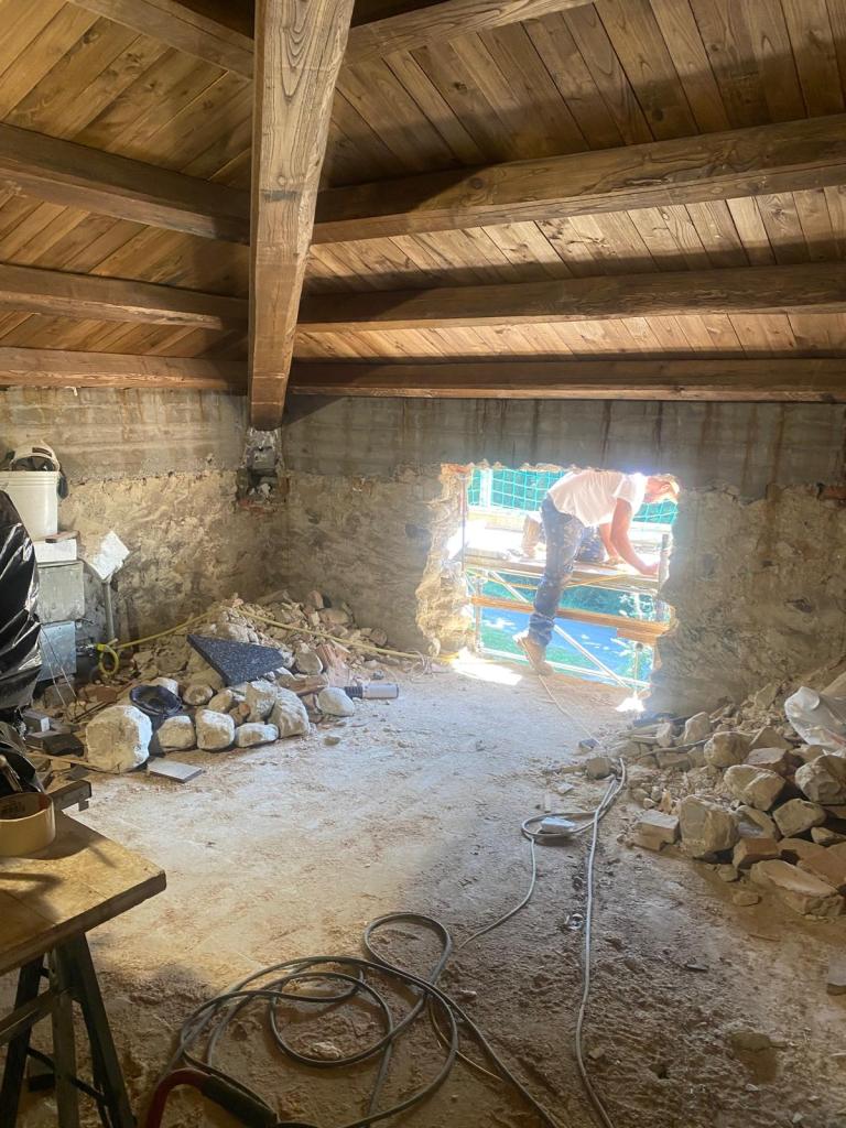 Now that the roof is on, they are starting to open the walls to enlarge the windows. The original window openings were VERY small, and with the roof elevation, we got permesso to increase the windows to 100 x 110. What a huge difference this will make!