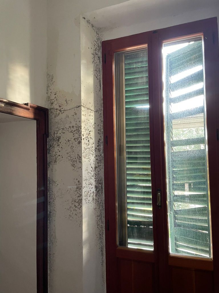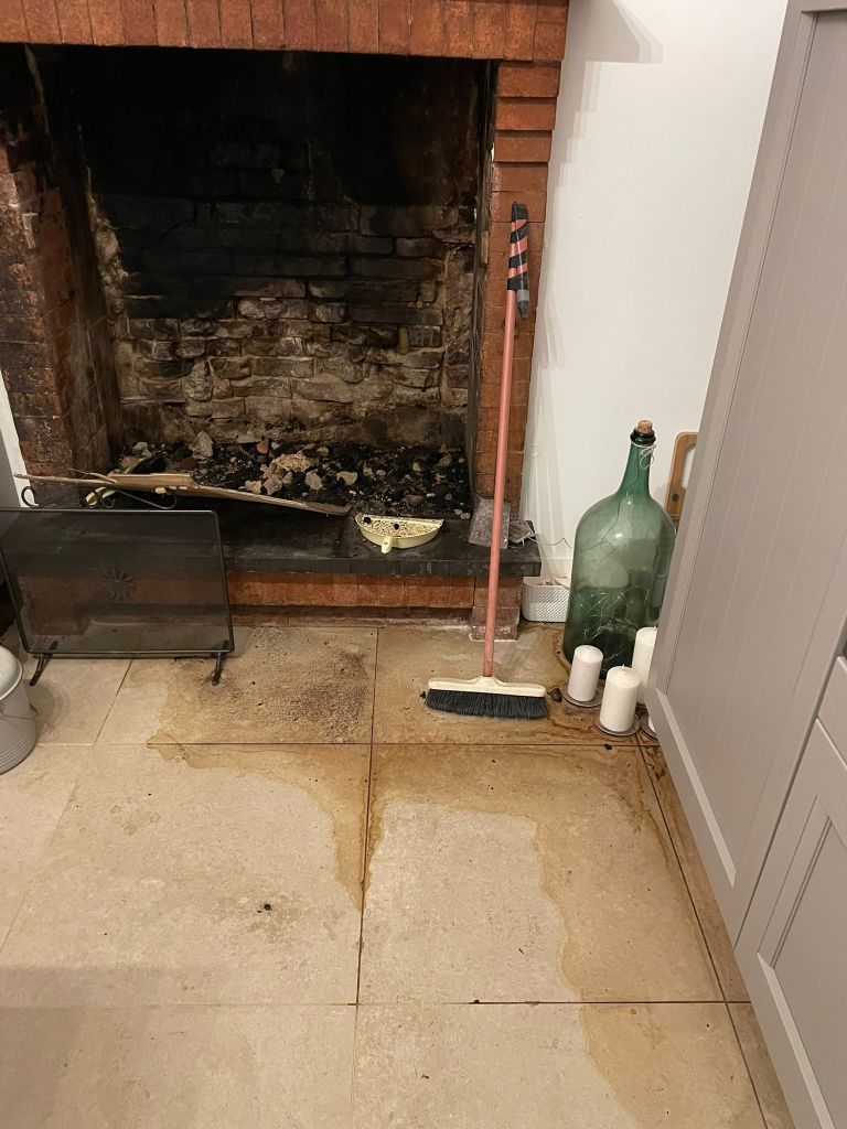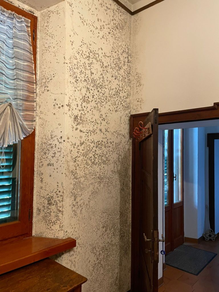 The result…water came in through the open chimneys, carrying all of the nasty dirt and soot into the kitchen through the open fireplace. Moisture also filled the house, enabling mold to cover the walls throughout. It was a hot mess.