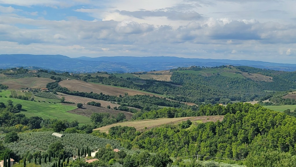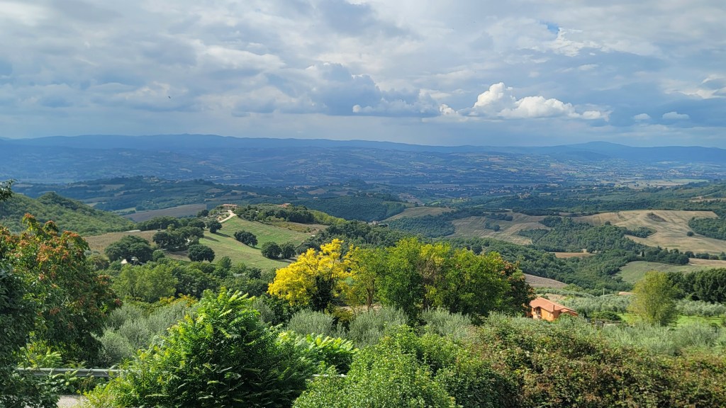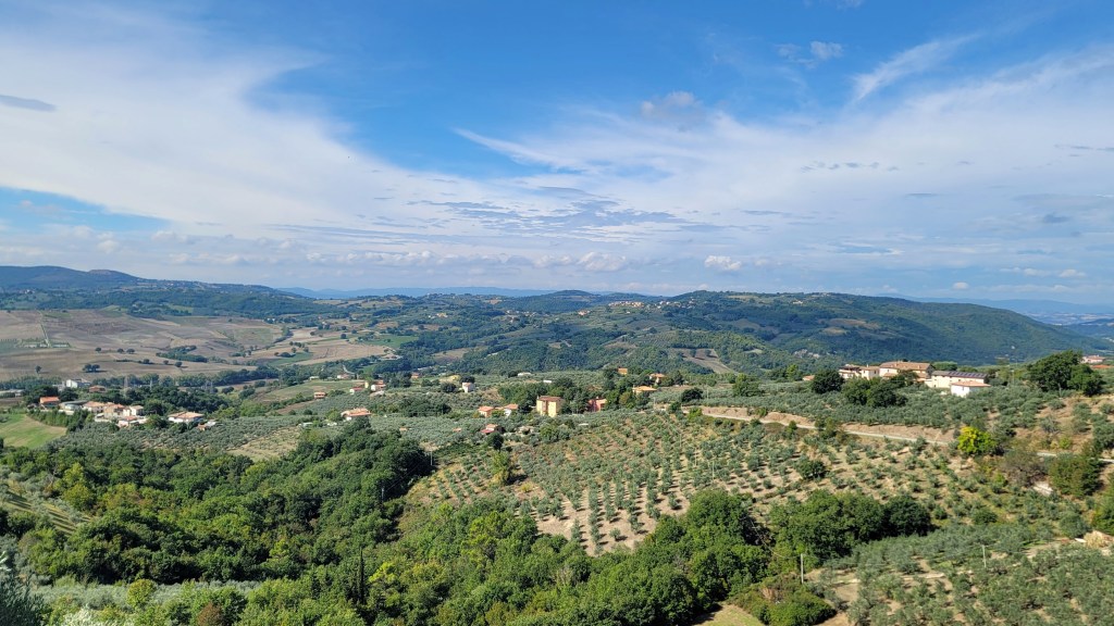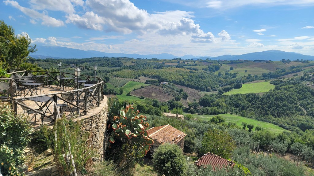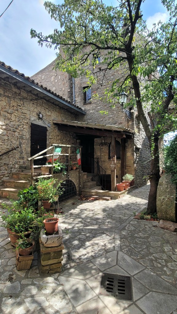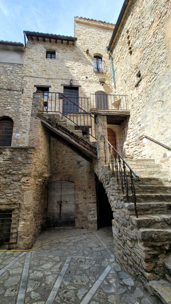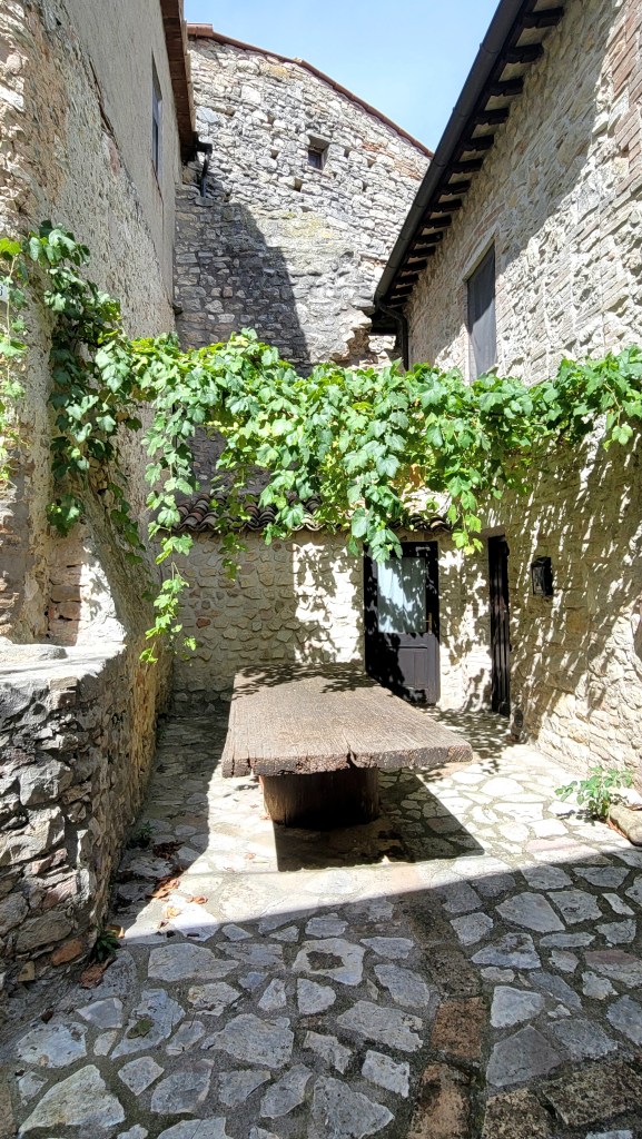 We headed out in search of more castles & ruins. The next stop at Castle of Marcellano was a bust, it was a little town that they turn into a living Nativity scene (Presepe) during Christmas. Our next castle was a small hamlet in which someone bought the entire thing and turned it into a resort of sorts with a wonderful restaurant, many apartments for rent, a giant swimming pool and views for days. See below.