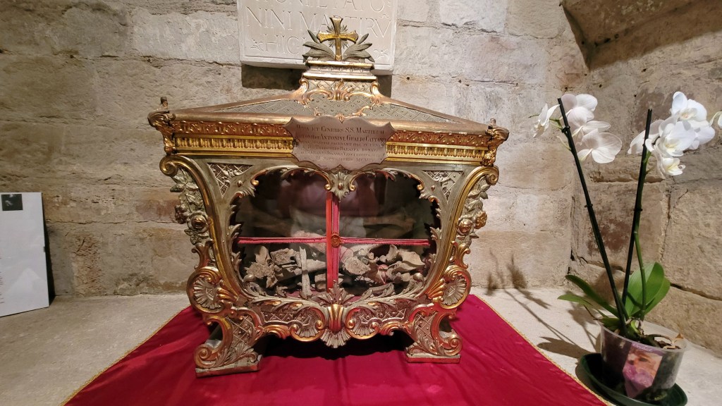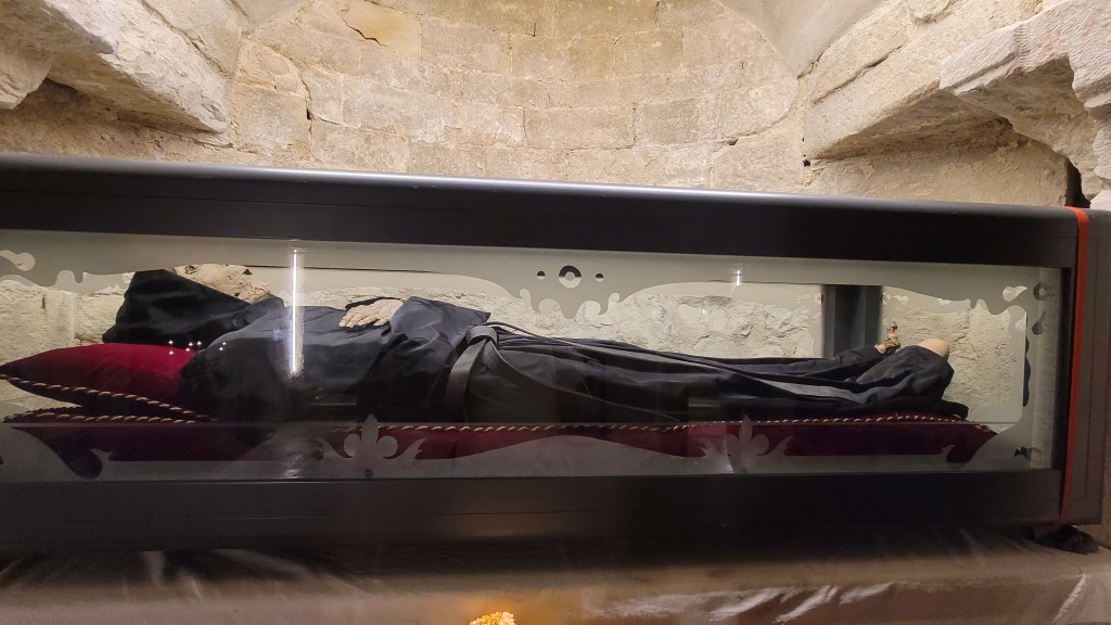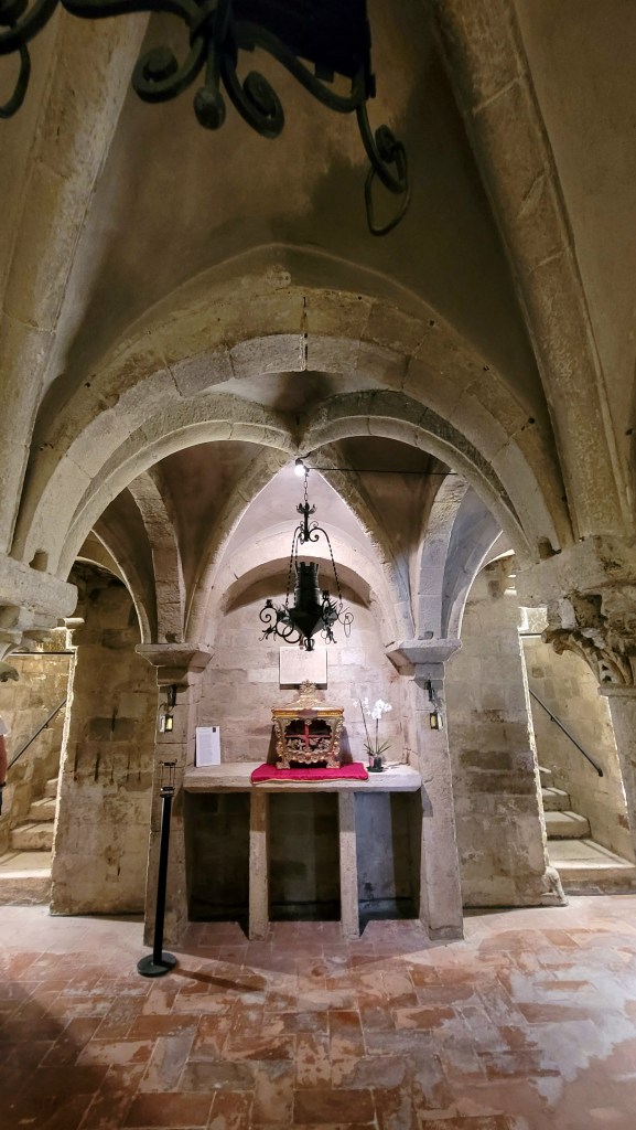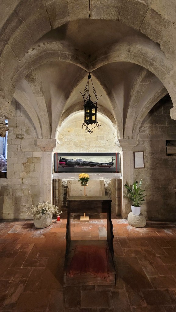 GC is well worth a visit if you are ever in the area. The view from il centro storico is beautiful. Besides the castle, you will find a lovely square, a beautiful church with an interesting 13th century crypt – glass-encased saint and all, and the cylindrical tower of the fortress, built in 1494.