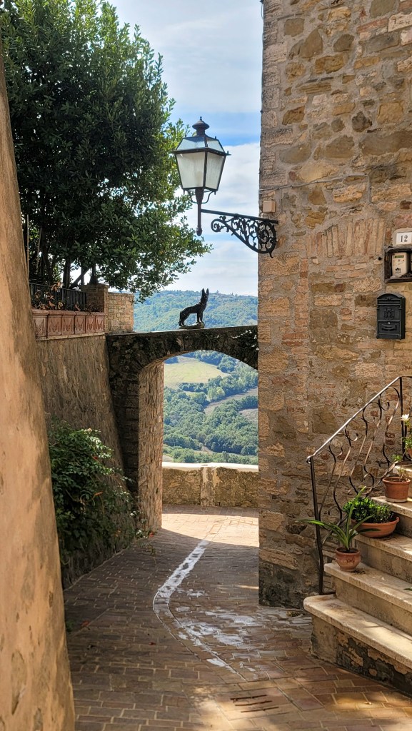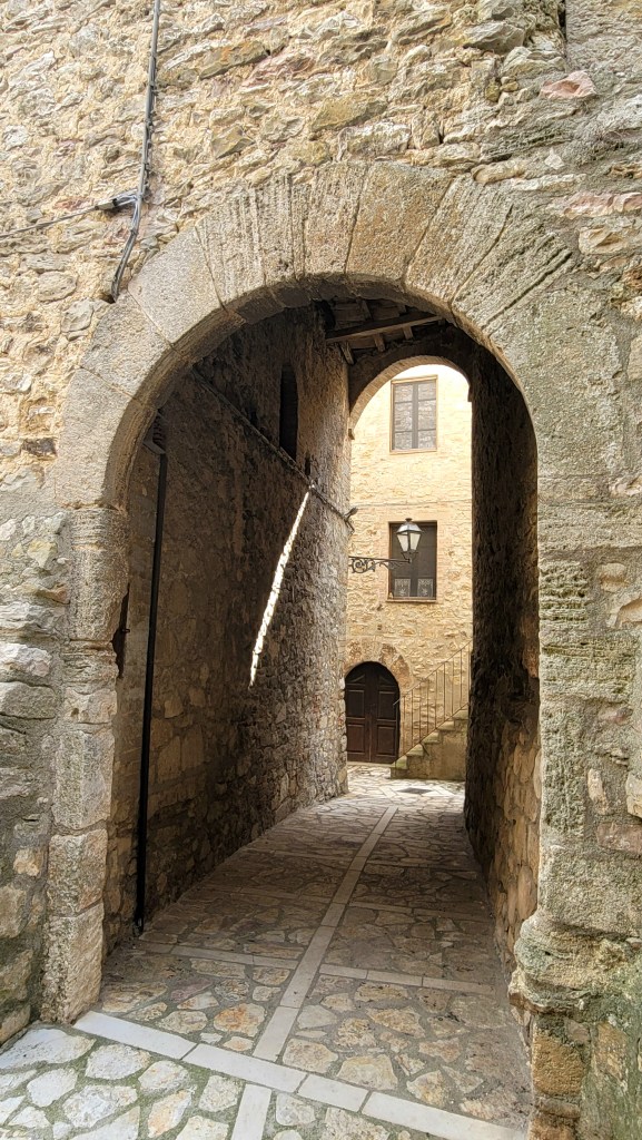 On a day like this, you never know what you are going to find. But after a long and busy day in Florence yesterday, we were ready for some tranquility and slow time. Not a lot at the next stop but some cool archways and a great tower,