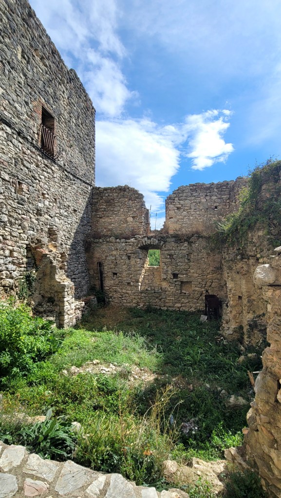 Along our route we passed this amazing abandoned stone house with a fantastic view of yet another castle across the valley.