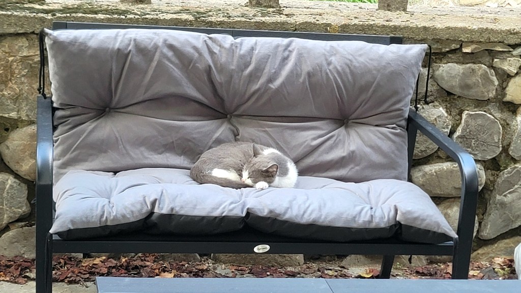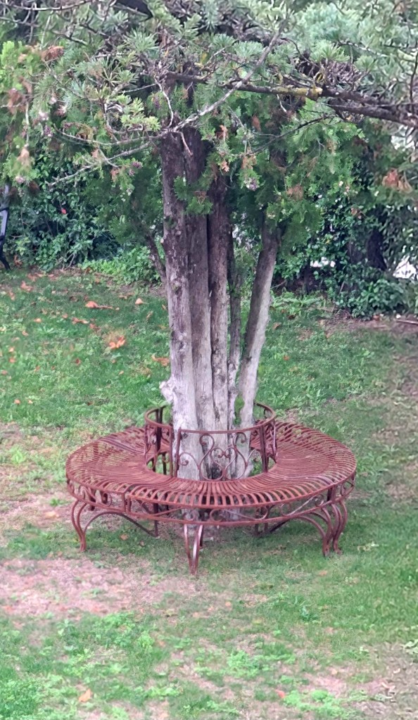 After everyone left in the Fall, I was exploring and found an antique store, Santapupa, that had an amazing array of treasures. I have always wanted a tree seat, one of those seats that wraps around the base of a tree. I had researched how to build one from wood, but never actually built one. But at this shop, there it was!!! They actually had two, one really large one and one regular sized one. I only needed the regular one. Magic! I bought it and a few days later they delivered it. YAY!!!