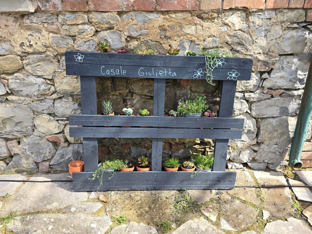 In 2024 Andrew had taken a few of the remaining pallets left behind by the workers and constructed a plant stand for me, which I then painted in the Fall. While I didn’t plant anything in it yet, I knew the spring of 2025 would give me ample opportunity.