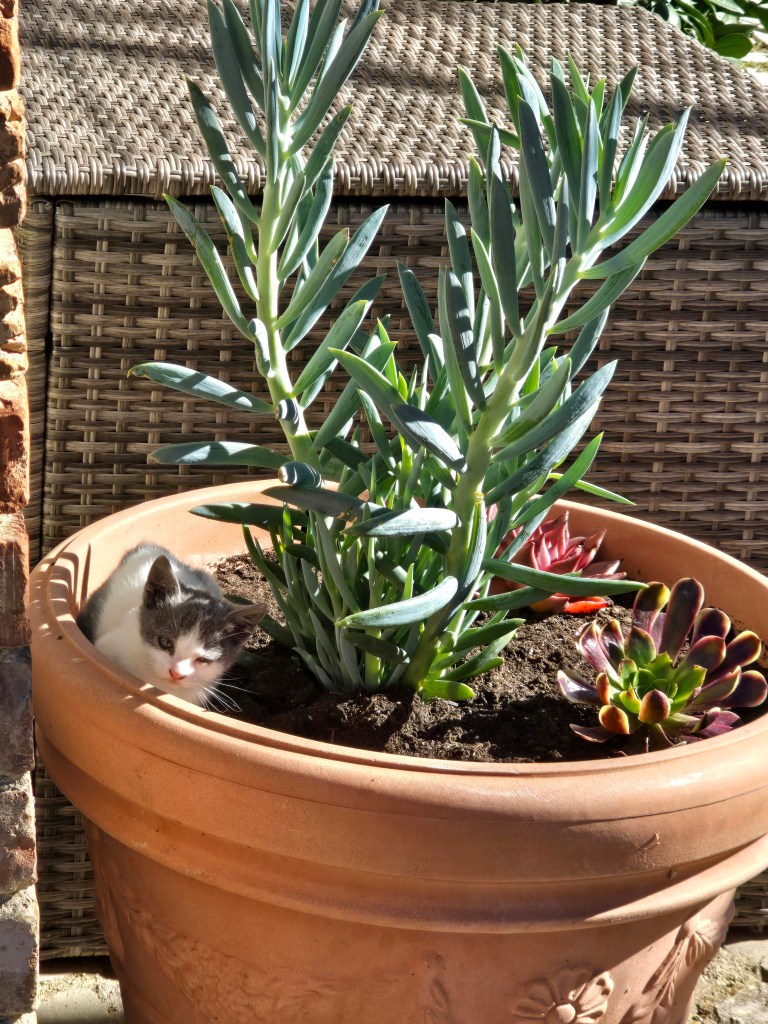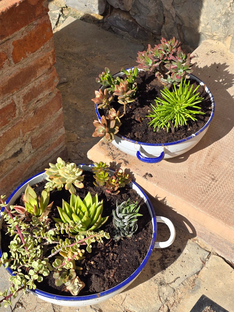 Come spring, this is where the garden really takes shape in such a fun way! Succulents planted and will serve for transplants in the Fall. My new wine barrel makes the perfect table for the high top chairs I bought a few years ago.